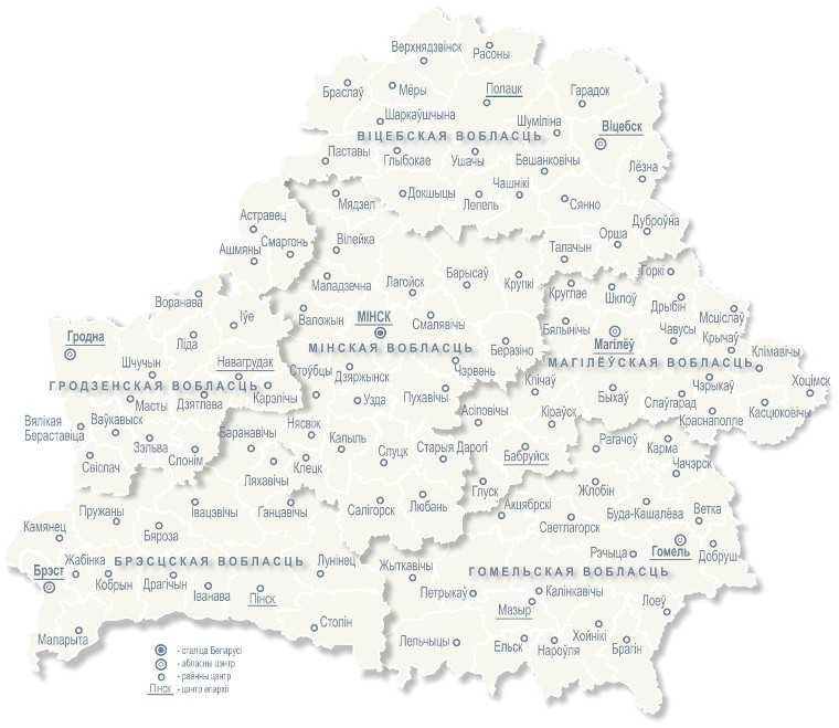 Барысаўскі раён Бярэзінскі раён Валожынскі раён Вілейскі раён Дзяржынскі раён Клецкі раён Капыльскі раён Крупскі раён Лагойскі раён Любанскі раён Маладзечанскі раён Мінскі раён Мядзельскі раён Нясвіжскі раён Пухавіцкі раён Салігорскі раён Слуцкі раён Смалявіцкі раён Старадарожскі раён Стаўбцоўскі раён Уздзенскі раён Чэрвеньскі раён